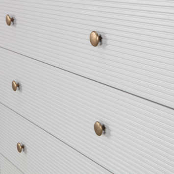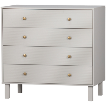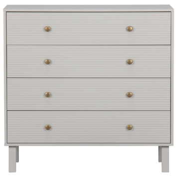 De WOOOD ladekast Madu wolkengrijs grenenhout 91 x 94 x 52 cm is een stijlvolle toevoeging aan je interieur. De kast is uitgevoerd in FSC-gecertificeerd grenenhout en afgewerkt in een zachte wolkengrijze kleur. Dit geeft de ladekast een moderne, rustige uitstraling die in verschillende woonstijlen goed tot zijn recht komt. De subtiele goudkleurige knoppen vormen een mooi contrast en zorgen voor een eigentijds detail.