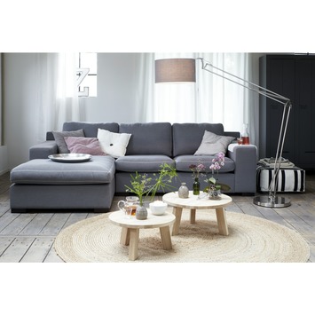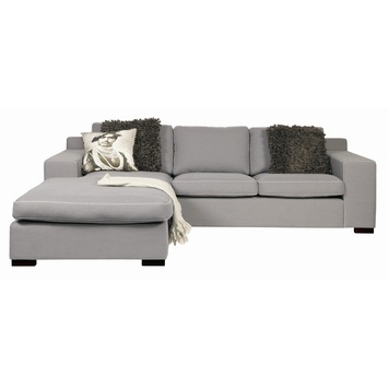 De WOOOD loungebank Kris links (met aan de linkerzijde het loungegedeelte) is een echte sfeermaker en straalt pure luxe uit door de mooie grijze stof en het witte stiksel. Het witte stiksel is een decoratieve festonsteek langs de naden. De stof bestaat uit 90% polyester en 10% linnen en is geschikt voor intensief woongebruik. De bank is voorzien van losse zit- en rugkussens en heeft een nonchalante uitstraling met een hoog zitcomfort. Ruim, zacht en lekker diep. Een echte blikvanger in huis. De afmetingen van de bank zijn (bxhxd): 267x87x96/170 cm. De zithoogte van de bank is 42 cm, de zitdiepte is 65 cm en de hoogte van de armleuning is 60 cm. Deze bank wordt in losse elementen geleverd. De elementen zijn eenvoudig met elkaar te verbinden door middel van beugels. Van deze bank Kris is ook een linker uitvoering verkrijgbaar.