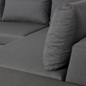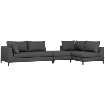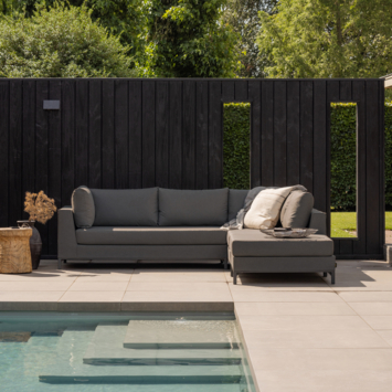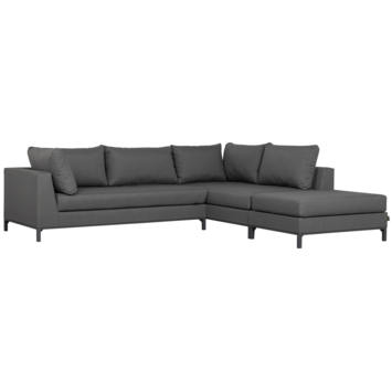 Deze variant heeft de hoek aan de rechterzijde, wat een open en toegankelijke indeling creëert. De royale afmetingen maken deze loungehoek perfect voor 4 tot 6 personen. Of je nu wilt ontspannen in de zon of gezellig samenkomt met vrienden, de diepe zitting en brede leuningen bieden optimaal comfort.