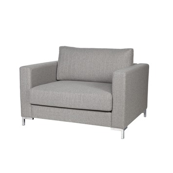 De WOOOD loveseat Royal grijs is de ideale plek om lekker te knuffelen met je lief. Of luieren met een goed boek of hangen voor de televisie. Deze ruime loveseat fauteuil Royal zit niet alleen super comfortabel, maar ziet er ook modern uit. De fauteuil is gestoffeerd met een stevige lichtgrijze 100% polyester stof en de poten zijn van verchroomd metaal. De fauteuil Royal afmeting (bxhxd): 121x85x100 cm, zitdiepte van 60 cm, een zithoogte van 43 cm met een armleuninghoogte van 66 cm, heeft nog een grotere broer, de 3-zits bank Royal breedte 251 cm.