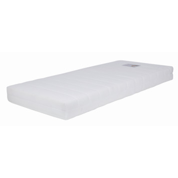 De WOOOD matras pocketvering 200x90 cm is een comfortabel pocketveringmatras met 5-zones en 265 veren per m², 18 cm dik, anti-allergisch en geschikt voor personen tot 110 kilogram. De comfortzones zorgen ervoor dat je lichaam speciale ondersteuning krijgt op je schouders en heupen/bekken. De SG 25 polyether afdeklaag aan beide zijden wordt gekenmerkt door het goede aanpassingsvermogen en een zeer goed ventilerend vermogen. De kern van dit pocketveringmatras zorgt voor een goede luchtventilatie en biedt tevens een goede vochtregulatie. In het onderhoud van dit matras wordt geadviseerd het matras regelmatig te draaien en keren. Verder de matrashoezen wassen volgens de wasvoorschriften (zie label in het matras). Dit pocketveringmatras is geschikt voor zowel latten-, spiraal- als een niet verstelbaar bedbodem en kan gecombineerd worden met de 1- persoonsbedden Dennis en Joy van het merk WOOOD.