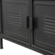 De kast is gemaakt van metaal in een zwart afwerking. De inhoud bevat 3 metalen legplanken en een opbergruimte, welke zich bevinden achter twee deuren met gehard glas en twee metalen deuren. Ronja heeft een vintage look wat een geleefde uitstraling geeft aan de royale vitrinekast.