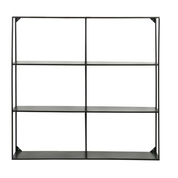 WOOOD wandrek Meert kan zeer veelzijdig toegepast worden. Bivoorbeeld als sfeervol wandrek met leuke woonaccessoires en kaarsen, in de keuken als kruidenrek of in de hal. De afmetingen zijn (bxhxd): 90x90x15 cm. Het metalen wandrek Meert is ook in een wandplankje in de breedtes 50 cm en 100 cm verkrijgbaar. Het wandrek is gemaakt van metaal en is zwart gelakt.
