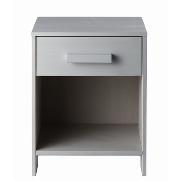 De WOOOD nachtkast Dennis kiezelgrijs is bijpassend gemaakt voor het bed Dennis en de bedbank Dennis. Dit nachtkastje is een onderdeel van de serie Dennis van het merk WOOOD. De serie Dennis is verkrijgbaar in twee kleuren grijs, kiezelgrijs of staalgrijs. Kies voor één van de kleuren of maak een spannende mix met beide kleuren grijs. Creëer de perfecte slaapkamer met deze serie Dennis. Dit nachtkastje beschikt over een opbergvak voor bijvoorbeeld boeken of een mandje en een handige lade met metalen ladegeleiding. Het nachtkastje is gemaakt van massief grenen, gespoten in de kleur kiezelgrijs en heeft een geborstelde afwerking. Bij het borstelen van grenen meubelen wordt de nerf sterk geaccentueerd en ontstaat er een doorleefd oppervlak.