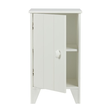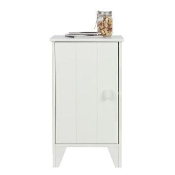 WOOOD nachtkastje Nikki wit gelakt, (hxbxd) 64x37x35 cm, is bijpassend gemaakt voor de bedbank Nikki. Dit nachtkastje is een onderdeel van de slaapkamerserie Nikki van het merk WOOOD. De serie Nikki is verkrijgbaar in twee kleuren jadegroen en wit gelakt. Kies voor één van de kleuren of maak een spannende mix met beide kleuren. Creëer de perfecte slaapkamer met deze serie Nikki. Dit nachtkastje met draaideur beschikt over een legplank. Het nachtkastje is gemaakt van massief grenen en is gelakt in de kleur jadegroen.