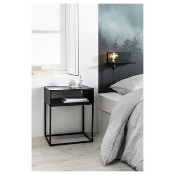 De WOOOD nachtkast Rio is een eigentijdse nachtkast en een toevoeging aan elke slaapkamer. Het nachtkastje heeft een metalen onderstel en het bovenvak is gemaakt van MDF. Zowel het metaal als het MDF is afgewerkt in een zwarte kleur.