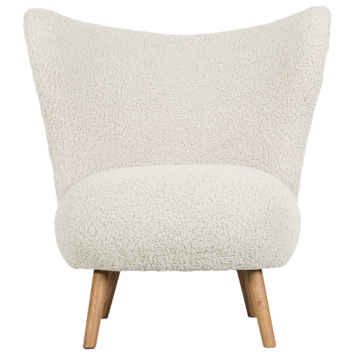 De Celine oorfauteuil is een zeer aantrekkelijke zitplaats. De Celine komt uit de collectie van het Nederlandse interieurmerk WOOOD en is uitgevoerd in een superzachte teddy stof in off white. De oorfauteuil is zichtbaar én voelbaar comfortabel. De teddy stof is gemaakt voor 100% polyester en heeft vier stoere houten poten. De poten hebben een lichte houtkleur, waardoor het geheel rustig oogt.