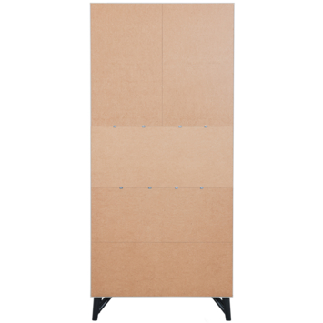 Met een hoogte van 200 cm, een breedte van 90 cm en een diepte van 37 cm is Miller een slank meubel dat groots functioneert. De indeling is slim en veelzijdig: een open vak over bijna de hele breedte van de kast, verborgen compartimenten achter de deuren, en een luchtige poothoogte van 15 cm die het ontwerp licht laat ogen. Elk opbergvak heeft een draagkracht van 5 kg, wat het meubel geschikt maakt voor boeken, decoratie of servies.