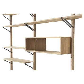 Met dit wandsysteem creëer je jouw eigen unieke wandmeubel! Het Jack wandsysteem uit de WOOOD collectie is een flexibel wandsysteem dat naar eigen voorkeur kan worden samengesteld. Het gehele wandsysteem is gemaakt van eikenhout [FSC] en afgewerkt met een beits in de kleur fumed. De collectie van het Jack wandsysteem bestaat uit een staander van 176 cm, een legplank (incl. dragers), een open vakkenkast (incl. dragers), een kast met schuifdeur (incl. dragers) en een bureaukast (incl. dragers). De onderdelen zijn ook eenvoudig weer te verwijderen, waarna er voor een nieuwe indeling kan worden gekozen. Mix en match met de onderdelen om de perfecte opstelling van het Jack wandsysteem voor jouw interieur samen te stellen.