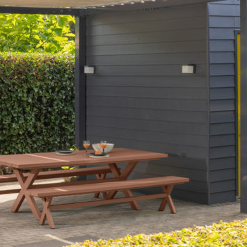 Om de levensduur te verlengen, is het aan te raden de tafel tijdens hevige regenval of in de winterperiode af te dekken met een beschermhoes of indien mogelijk binnen te plaatsen. De Delta picknicktafel wordt geleverd in één pakket en is eenvoudig te monteren met de bijgeleverde handleiding. Zo creëer je in no-time een stijlvolle en functionele zitplek in je tuin.
