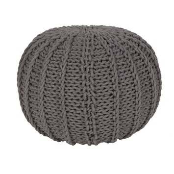WOOOD poef gehaakt rond licht 50x50x37 cm licht grijs