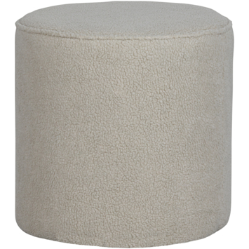 Deze hoge poef is volledig bekleed met een rijke, off white teddystof. De stof voelt niet alleen heerlijk zacht aan, maar geeft ook een uitnodigende, wollige uitstraling die perfect aansluit bij moderne, Scandinavische of cosy interieurs. De gebruikte stof is gemaakt van 100% polyester en is geschikt voor dagelijks gebruik.