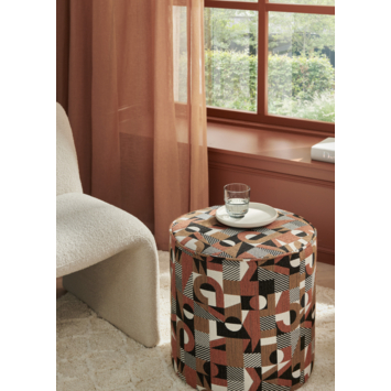 WOOOD Poef Tim grafisch roest melange design polyester stof