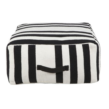 WOOOD poef vierkant streepmotief stof 55x55x30 cm zwart