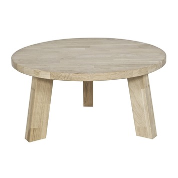 De WOOOD salontafel Rhonda Ø80x33 cm is een rond massief eiken bijzet- en/of salontafel met een diameter van 80 cm en een van hoogte is 33 cm. Door het hoogteverschil van circa 3 cm met de andere Rhonda bijzettafels (hoogte 27 cm of 30 cm) kunnen deze op een leuke manier gecombineerd worden tot een set van twee of drie tafels die in elkaar overlopen. Zo ontstaat een bijzondere salontafel. Eiken brengt sfeer in huis, het onbehandelde eiken van deze tafel bestaat uit stroken verlijmd eikenhout (vingerlas).