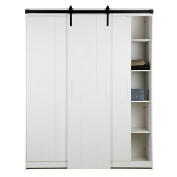WOOOD schuifdeur hang/leg garderobekast Luuk wit gelakt 215x170x61 cm