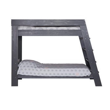 Het stapelbed Julien van het merk WOOOD is een eigentijds variant op de standaard stapelbedden. De robuuste trap is zowel aan de linker- als aan de rechterzijde te plaatsen. Het stapelbed Julien is gemaakt van massief grenen, gespoten in de kleur staalgrijs en heeft een geborstelde afwerking. Bij het borstelen van grenen meubelen wordt de nerf sterk geaccentueerd en er ontstaat een doorleefd oppervlak. De buitenafmetingen van het stapelbed Julien (incl. trap links of rechts geplaatst) zijn: (bxlxh) 96x247x179 cm (matrasmaat 90x200 cm en de maximale veilige matrashoogte voor het bovenste bed is 17 cm)). Beide bedden worden compleet met stevige lattenbodems geleverd en excl. matrassen. KARWEI adviseert bij dit bed het matras Bonell 90x200x17 cm. Dit matras biedt een hoog slaapcomfort voor kinderen en tieners. Creeer de perfecte slaapkamer in het staalgrijs samen met bijvoorbeeld de volgende onderdelen: kast Dennis en/of lockerkast Stijn, bureau Dennis en het wandrek Dennis.. Dit bed wordt als bouwpakket geleverd en is makkelijk te monteren met behulp van de bijgeleverde montage instructie. Het stapelbed Julien is ook als hoogslaper in het wit en staalgrijs verkrijgbaar.