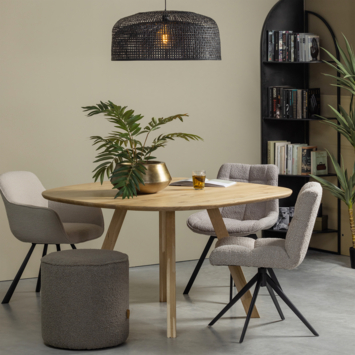 Creëer jouw ideale eethoek met de elementen uit de Tablo serie van het Nederlandse interieurmerk WOOOD. Tablo heeft vele combinatie mogelijkheden en diverse afmetingen beschikbaar om jouw eethoek precies passend in te richten. Kies bijvoorbeeld voor deze organisch gevormde variant met de veelzijdige drie-standen poot voor een speels effect.