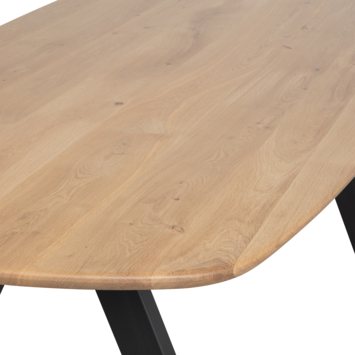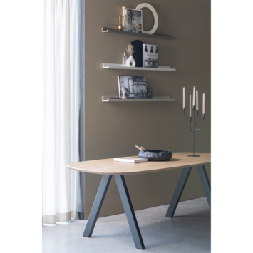 - Eikenhouten tafelblad (FSC-gecertificeerd) en metalen onderstel