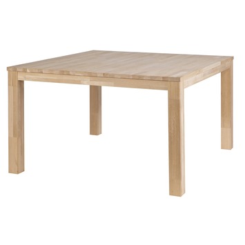 De WOOOD tafel Largo (lxbxh) 130x130x78 cm is een onbehandeld eiken tafel. De tafel is basic, robuust en geeft een warme uitstraling. Deze tafel Largo heeft vierkante stevige rechte blokpoten van 8x8 cm en een tafelblad dikte van 26 mm. Door toepassing van metalen hoekplaten aan de onderkant van het tafelblad is deze tafel zeer stevig en stabiel. De hoogte van de tafel bedraagt 78 cm. De afstand tussen vloer en onderkant tafelregel bedraagt 68,5 cm (belangrijk bij armleunstoelen). Massief eiken brengt sfeer in huis, het onbehandelde eiken van deze tafel bestaat uit stroken verlijmd eikenhout (vingerlas). De eettafel Largo is ook leverbaar in de afmetingen: 230x90 cm, 200x90 cm, 150x85 cm en 180x85 cm.