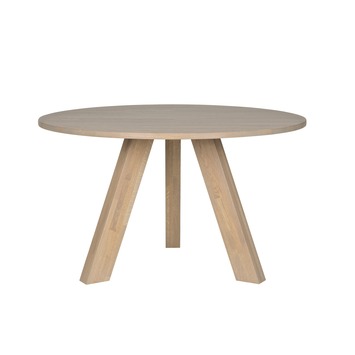 De WOOOD tafel Rhonda Ø129x77 cm is stoer, robuust en heeft een trendy uitstraling in de kleur fumed. Deze 129 cm ronde tafel heeft stevige blokpoten van 8x11 centimeter en een 26 millimeter dik blad. Door toepassing van metalen hoekplaten is deze tafel duurzaam in gebruik. De hoogte van de tafel bedraagt 77 cm. De afstand tussen vloer en onderkant tafelregel is 74 cm (belangrijk bij armleunstoelen). Eikenhout brengt sfeer in huis, het eiken van deze tafel bestaat uit stroken verlijmd eikenhout (vingerlas) met daarover een speciale (vergrijsde) 2-componenten olie, die zeer slijtvast en water-en hittebestendig is.