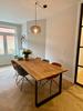 Prachtig stevig blad. In combinatie met de eikenhouten poten hebben we een heel fijne grote tafel tegen een mooie prijs.