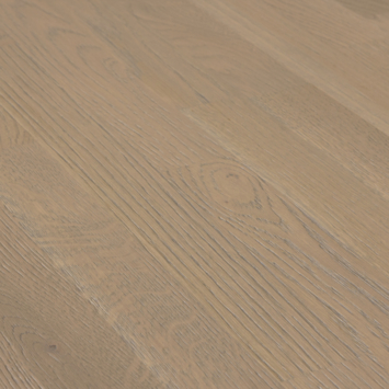 Het blad is vervaardigd uit stroken verlijmd eikenhout met vingerlasverbindingen, waardoor een bijzonder en speels patroon ontstaat. Onbehandeld eikenhout heeft een lichte kleur met een zachtgele ondertoon en een duidelijke nerftekening. Omdat hout een natuurproduct is, is elk tafelblad uniek. De lichte borsteling benadrukt de nerven en laat de beitskleur mooi tot zijn recht komen. Het hout is FSC-gecertificeerd.