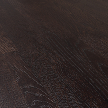 Het blad is vervaardigd uit stroken verlijmd eikenhout met vingerlasverbindingen, wat een karakteristiek en natuurlijk patroon oplevert. Onbehandeld eikenhout heeft een lichte basistint met een zachtgele gloed en een duidelijke nerftekening, waardoor ieder blad uniek is. De lichte borstelbehandeling accentueert de nerven en verdiept de kleurbeleving. Voor deze collectie wordt FSC-gecertificeerd eikenhout gebruikt.