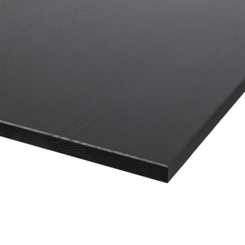 Het blad is gemaakt van FSC-gecertificeerd eikenhout dat is opgebouwd uit stroken verlijmd hout met vingerlasverbindingen. De natuurlijke nerftekening blijft mooi zichtbaar onder de zwarte afwerking en geeft de tafel een unieke uitstraling. Zo haal je een blad in huis dat karakter en sfeer toevoegt aan je interieur.