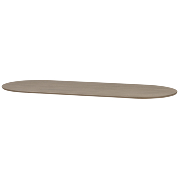 Met het Tablo tafelblad ovaal camel 220x90 cm stel je eenvoudig jouw ideale eettafel samen. De Tablo collectie geeft je volop mogelijkheden om te combineren met verschillende poten en afmetingen. Dit royale ovale blad heeft een elegante vorm en is afgewerkt met een schuine rand die zorgt voor een verfijnde en moderne uitstraling. Dankzij de beits op waterbasis krijgt het eikenhout een warme vergrijsde bruintint die perfect past bij uiteenlopende woonstijlen.
