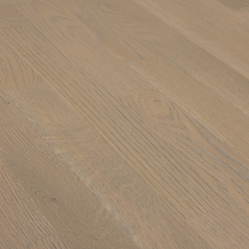 Het blad is opgebouwd uit stroken verlijmd eikenhout met vingerlasverbindingen waardoor een speels en natuurlijk patroon ontstaat. Onbehandeld eikenhout heeft een lichtbruine kleur met een zachtgele gloed en een duidelijke nerftekening. Omdat ieder stuk hout zijn eigen kenmerken heeft, is elk blad uniek. De licht geborstelde afwerking benadrukt de nerven en laat de beitskleur extra mooi naar voren komen. Voor dit blad is FSC-gecertificeerd eikenhout gebruikt.