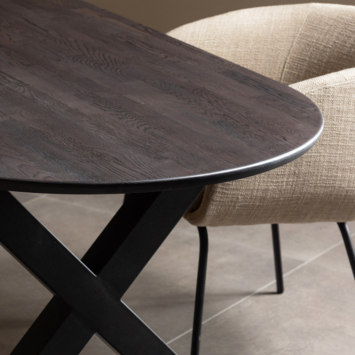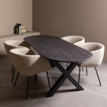 Het Tablo ovaal tafelblad mid brown 220x90 cm is een stijlvolle basis voor een ruime eettafel. De ovale vorm geeft de eethoek een zachte en uitnodigende uitstraling en dankzij de schuine kantafwerking oogt het geheel extra verfijnd. Het blad is behandeld met een beits op waterbasis waardoor het eikenhout een diepe donkerbruine tint heeft die direct warmte toevoegt aan jouw interieur.