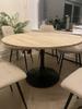 Het blad is gemaakt van massief eikenhout dat FSC-gecertificeerd is. Doordat het hout onbehandeld wordt geleverd, komen de natuurlijke nerven en noesten mooi naar voren en krijgt elke tafel een unieke en authentieke uitstraling.
