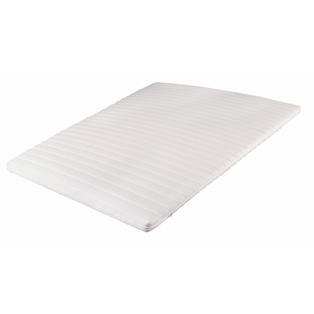 De WOOOD Topmatras Leira 160x200x5 cm verhoogt het slaapcomfort en maakt van 2 matrassen één geheel. Het topmatras voor boxspringbed 160x200 cm is gemaakt van 4 cm koudschuim met 200 gram vlies en een 100% polyester dubbeldoek tijk. KARWEI adviseert dit topmatras te combineren met de boxspring Leira.