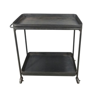 WOOOD trolley Lente is een klassiek meubel in een fraai vormgegeven eigentijdse uitvoering. Je kunt hem als sidetable gebruiken of als los vrijstaand meubel. Deze verouderd zwart metalen theewagen Lente is tijdloos en past in elke woonstijl. Je kunt op 2 niveaus je spullen plaatsen. De theewagen Lente is voorzien van een stoere metalen handgreep. De soepel lopende zwenkwielen zijn alle 4 voorzien van een blokkeerstand zodat de theewagen op een vaste plek kan blijven staan. De afmetingen zijn (hxbxd): 82,5x88x37 cm.