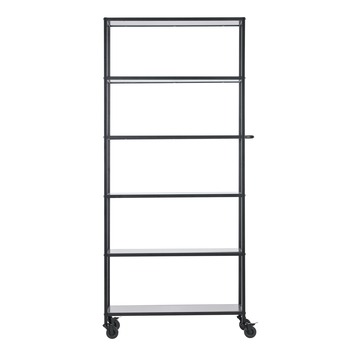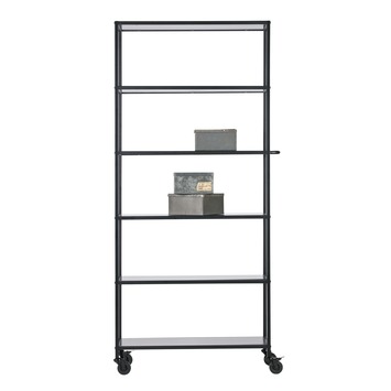 WOOOD trolley Teun (hxbxh 194,5x91x40 cm) is een moderne versie van een klassiek meubel. Door de strakke en industriële vormgeving past deze trolley in elk interieur. De trolley Teun heeft een metalen frame met MDF legplanken. Je kunt de trolley als wandkast gebruiken of als los vrijstaand meubel. De trolley Teun heeft zwenkwieltjes, waarvan er 2 voorzien zijn van een blokkeerstand, en aan beide kanten een hendel. Het meubel is hierdoor gemakkelijk te verplaatsen!