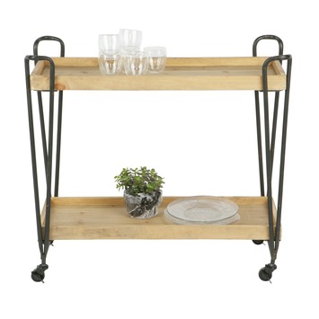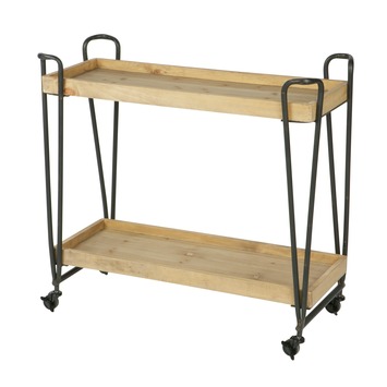 WOOOD trolley Zoë zwart metaal met mangohout 2-laags 92x84x38 cm