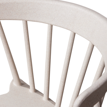 Het onderhoud van deze spijlenstoel is eenvoudig. Afnemen met een droge of lichtvochtige doek is voldoende om de stoel schoon te houden. Vermijd scherpe objecten om krassen te voorkomen en bescherm kleuren door de stoel bij minder gebruik binnen te zetten om verkleuring te minimaliseren.