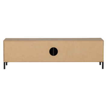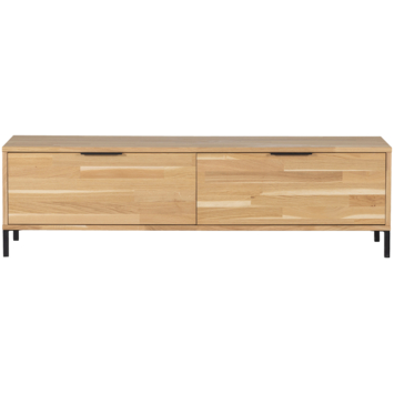 Het Joy tv-meubel is uitgevoerd in sfeervol eikenhout met een extra matte finish. De tv-kast uit de collectie van het Nederlandse interieurmerk WOOOD is gevormd vanuit een eenvoudig, stijlvol design. De semi-hoge poten geven het meubel lucht en laten Joy perfect uitkomen in diverse interieurstijlen. Zo voegt Joy zich gemakkelijk in een modern, Scandinavisch of botanisch interieur. Eikenhout wordt gekenmerkt door de lichtbruine tint met een zachtgele gloed en duidelijk zichtbare nerftekening. Daarbij droogt eikenhout over het algemeen zeer langzaam, wat kan zorgen voor het natuurlijke proces van scheuring en verkleuring. Eikenhout is een natuurlijk product wat een zichtbaar podium verdient, hierom gebruiken wij enkel lakken en coatings op natuurlijk basis welke de nerftekeningen en natuurlijke eigenschappen van het eikenhout goed tot zijn recht laat komen. Het eikenhout is daarbij 100% FSC-gecertificeerd. Maak de tv-kast regelmatig stofvrij met een schone, droge doek. Verwijder vochtige vlekken direct met een licht vochtige doek en neutraal schoonmaakmiddel, laat het hout aan de lucht drogen. Hanteer altijd de basisbescherming voor hout, zoals het gebruik van een onderzetters onder een drinkglas. Het meubel wordt in één pakket geleverd en is eenvoudig te monteren aan de hand van de bijgeleverde montagehandleiding. De 2-deurs kast met 2 planken heeft royale afmetingen van 40 x 140 x 44 cm (hxbxd) een draaggewicht van 15 kg per vak. Het snoergat bevindt zich in het centrum van de achterzijde en is via beide vakken bereikbaar.