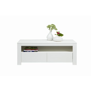 Het massief grenen TV-audiomeubel Lars is fris, basic en heeft een robuuste uitstraling. Dit TV-audiomeubel uit de WOOOD collectie is tijdloos en past in iedere woonstijl. Bovenin het meubel zit één royaal vak voor bijvoorbeeld een audio- installatie of tijdschriften en de twee ruime greeploze lades onderin bieden plek voor bv DVD’s, CD’s. De lades zijn voorzien van solide metalen ladegeleiders. De afmetingen van het meubel zijn: (bxhxd): 120x47x45 cm. Dit meubel is gespoten in de kleur wit en heeft een geborstelde afwerking. Bij het borstelen van grenen meubelen wordt de nerf sterk geaccentueerd en ontstaat een doorleefd oppervlak. Dit TV-audiomeubel Lars is ook verkrijgbaar in onbehandeld eiken en in de breedtes 150 cm en 172 cm. Dit meubel wordt als bouwpakket geleverd en is makkelijk te monteren met behulp van de bijgeleverde montage instructie.