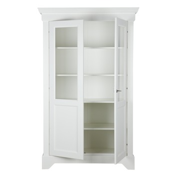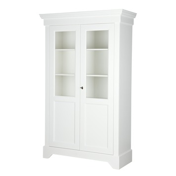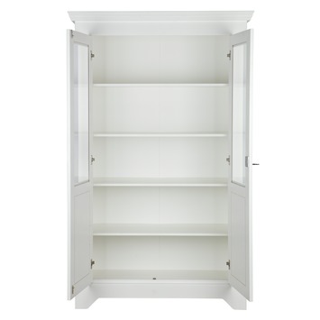 De WOOOD vitrinekast Anna (hxbxd) 191x118x47 cm is een brocante vitrinekast en is gemaakt van massief FSC gecertificeerd grenenhout in het wit gelakt. Deze vitrinekast Anna is tijdloos en past in elke woonstijl. De 4 legplanken in deze kast zijn gemaakt van wit gelakt massief grenenhout. De deuren zijn voorzien van solide metalen scharnieren en een slot met sleutel. Deze vitrinekast Anna is ook in de kleur betongrijs en zwart verkrijgbaar. In dezelfde stijl is er ook een geheel dichte uitvoering met de naam Isabel verkrijgbaar.