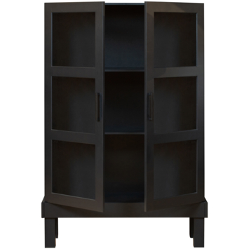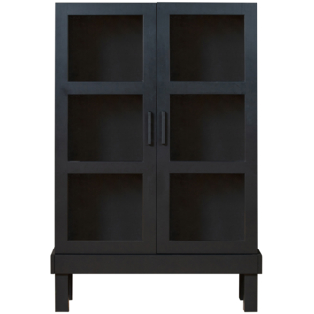 WOOOD vitrinekast Bonk 2-deurs matzwart grenenhout 160 x 107 x 39 cm