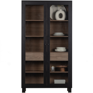 WOOOD Vitrinekast Goos 2- deurs zwart noten