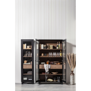 De Goos 2-deurs vitrinekast is een stoere eyecatcher in ieder interieur. De royale vitrinekast is een item uit de collectie van het Nederlandse merk WOOOD.