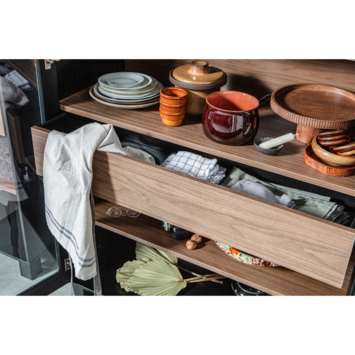 Goos is vervaardigd uit grenenhout met een matzwarte buitenzijde. De warmgekleurde binnenzijde van walnootfineer zorgt voor een unieke twist aan het design.