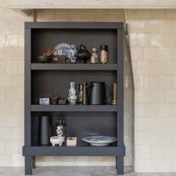 Met afmetingen van 160 cm hoog, 107 cm breed en 39 cm diep biedt Bonk veel opbergruimte, terwijl het slanke ontwerp zorgt dat de kast niet te veel visuele ruimte inneemt. De zwarte afwerking geeft de kast karakter en laat zich goed combineren met natuurlijke materialen, lichte muren of juist andere donkere elementen. De kast is voorzien van drie royale legplanken met een breedte van 100 centimeter en een diepte van 35 centimeter. De tussenruimte van 42 centimeter biedt voldoende hoogte voor grotere accessoires, zonder dat de kast massief oogt.