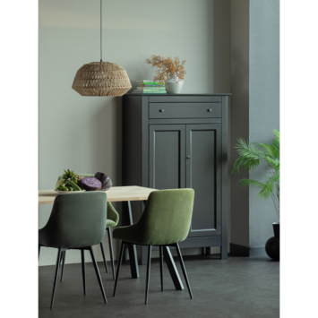 De WOOOD wandkast Eva (hxbxd) 150x93x40 cm is een brocante wandkast gemaakt van betongrijs gelakt, FSC gecertificeerd, grenenhout. Deze wandkast Eva is tijdloos en past in elke woonstijl. Het interieur van deze kast is gemaakt van gemêlamineerd spaanplaat en de handige lade bovenin, met 2 porseleinen knoppen, is voorzien van solide metalen ladegeleiders. De binnenkant van de kast is ingericht met 3 brede legplank. De deuren zijn voorzien van solide metalen scharnieren en een slot met sleutel. Deze wandkast Eva is ook in de kleur wit verkrijgbaar.