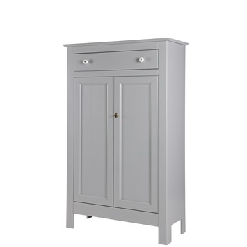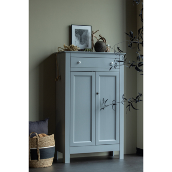 De WOOOD wandkast Eva (hxbxd) 150x93x40 cm is een brocante wandkast gemaakt van betongrijs gelakt, FSC gecertificeerd, grenenhout. Deze wandkast Eva is tijdloos en past in elke woonstijl. Het interieur van deze kast is gemaakt van gemêlamineerd spaanplaat en de handige lade bovenin, met 2 porseleinen knoppen, is voorzien van solide metalen ladegeleiders. De binnenkant van de kast is ingericht met 3 brede legplank. De deuren zijn voorzien van solide metalen scharnieren en een slot met sleutel. Deze wandkast Eva is ook in de kleur wit verkrijgbaar.