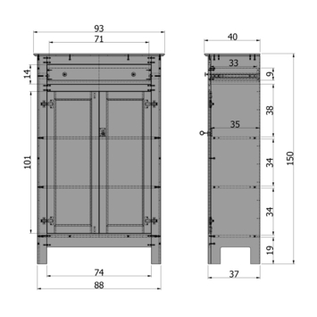 - Afmetingen: 150x93x40 cm (hxbxd)