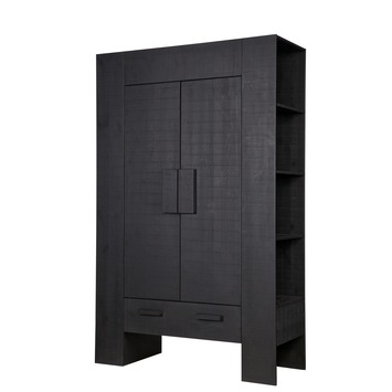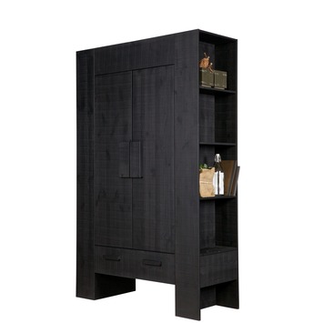 WOOOD wandkast Hidde is een veelzijdige wandkast die in vrijwel in iedere woonstijl past. De kast is een handige opberger die overal geplaatst kan worden. De wandkast Hidde is voorzien van 2 deuren met solide metalen scharnieren, een lade met metalen ladegeleiders en houten grepen. Aan beide zijde van deze wandkast Hidde zitten 4 open opbergvakken die als boekenkast kan dienen of je kunt dit decoreren met leuke woonaccessoires. De kast Hidde is gemaakt van massief grenen gecombineerd met 3 legplanken, gespoten in de kleur zwart. De perfecte aanvulling voor in de woonkamer, maar natuurlijk overal te plaatsen. De afmetingen van de kast zijn (bxhxd): 116x185x45 cm. Dit artikel wordt als bouwpakket geleverd en is makkelijk te monteren met behulp van de bijgeleverde montage instructie. De wandkast Hidde is ook verkrijgbaar in de kleur taupe.